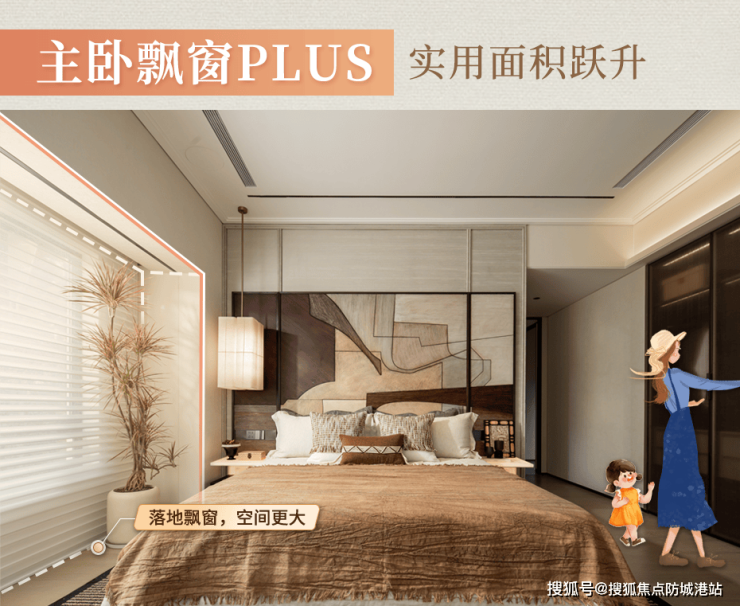 第三,居住体验的全面升级,从采光、视野到空间尺度,都实现了质的提升。新规户型在飘窗设计上,突破了传统凸起式飘窗的限制,采用了落地飘窗 plus 的设计,不仅能够实现更大面积的采光,让整个室内空间更加通透明亮,还能将飘窗与室内空间完全融合,拓展卧室的实际使用面积,同时 270° 转角飘窗的设计,还能带来更开阔的景观视野,让居家生活的舒适度与仪式感都得到了大幅提升。而在阳台设计上,新规放宽了阳台的尺度限制,让户型能够拥有更宽阔的观景阳台,不仅提升了公区的空间感,还能为家庭生活提供更多的场景可能,无论是家政收纳、休闲品茗,还是园艺种植、健身运动,都能在阳台空间实现。