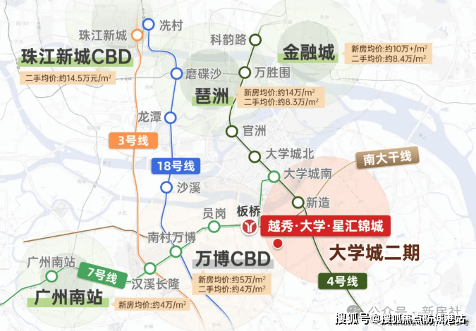 越秀地产作为广州市属国企“越秀集团”旗下地产业务旗舰,深耕广州30年,2026年位列“中国国有房企品牌价值TOP3”,其“教育+生态+准现房”的开发能力在华南独树一帜,累计开发“越秀·星汇云锦”“越秀·滨海花园”等20+个标杆项目。越秀·大学·星汇锦城是其“星汇系”在大学城二期的扛鼎之作,依托集团“产城融合+教育住区”战略,整合了越秀在大学城、万博、长隆的资源,从拿地(2022年通过招拍挂获得,地块编号:穗国土规划出让告字〔2022〕18号)到开发全程自主运营,无合作方,确保品质可控。