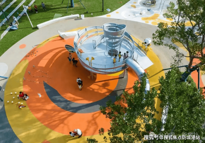 多节点:儿童活动区(6类24项设施,含滑索、蹦床、戏水池,采用EPDM环保橡胶地垫,通过SGS无毒检测)、400米健身跑道(材质为聚氨酯,减震性好,设里程标识、休息座椅)。