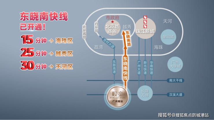 项目位于广州南站核心区域,依托“世界级超大型TOD”战略定位,享受大湾区门户枢纽地位。区域四通八达,形成4高铁、4城际、4地铁的立体交通网络,可30分钟纵享主城繁华生活,47分钟直达香港西九龙,1小时通达大湾区核心城市,8小时覆盖全国重要城市。南站周边规划完善,包括广佛环线东环、广南快速线、海珠湾隧道等多条交通干线,为未来城市发展和住宅增值提供坚实保障。项目区位优势突出,是交通枢纽与城市商务、生活资源交汇的战略核心区域,未来潜力巨大。
