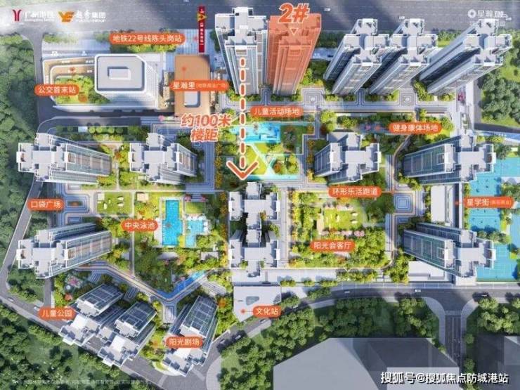 两大国企联手打造的越秀星瀚TOD,总建面约88万㎡,是番禺南站板块规模领先、配套自成体系的轨道综合住区,可不是那种小体量楼盘能比的。项目整体规划了21栋高层住宅,采用分区开发模式,分为北区和南区,中间布局了公办幼儿园、九年一贯制学校、公共绿地和社区服务设施,实现了居住、教育、商业、交通四大功能的高效融合,没有割裂感,也没有干扰区,完全符合现代TOD开发“站城一体”的最高标准,住起来会特别舒服。