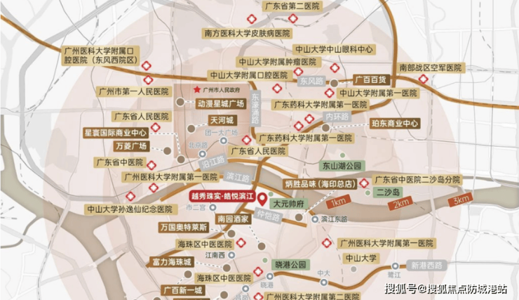 医疗方面,项目3公里范围内有广州市儿童医院及南方医科大学口腔医院等三甲医院,保障日常及急救医疗需求。休闲娱乐方面,项目临近孙中山大元帅府广场、海印公园、海珠体育中心及滨江沿线绿道,提供丰富休闲活动场所,可满足散步、遛娃及运动健身需求。整体来看,生活配套成熟、便利,同时兼顾滨江生态景观,为高品质生活提供保障。