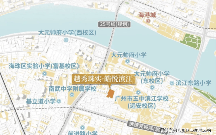 越秀珠实·皓悦滨江周边生活配套齐全,能够满足家庭多样化需求。商业方面,项目周边1公里范围内汇聚万国奥特莱斯、万联购物中心、君汇天地及海港城等大型商业综合体,提供高端购物与生活便利。教育资源方面,项目附近有海印南苑幼儿园、名都幼儿园、大元帅府小学及滨江东路小学,初中可对口五中滨江学校或南武中学,形成较完善的教育体系,为家庭子女提供多样选择。