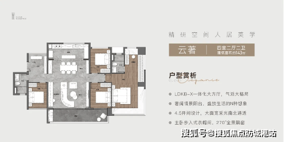作为新规后的项目,云筑上品的户型设计颠覆传统,使用率超 110%,空间利用率在板块内遥遥领先。主打建面约 88㎡三房、105㎡四房、121㎡四房、143㎡四房户型,全生命周期设计覆盖不同家庭需求。