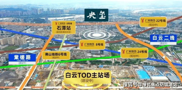 建发九龙仓·央玺位于广州市白云区核心位置,紧邻地铁8号线石潭站,步行距离仅约800米,交通便捷。项目周边规划有七条地铁线路(含在建及规划中),其中最引人注目的是未来将开通的地铁22号线,这将使居民能够直达东莞、深圳等粤港澳大湾区的核心城市,享受同城生活圈的便利。