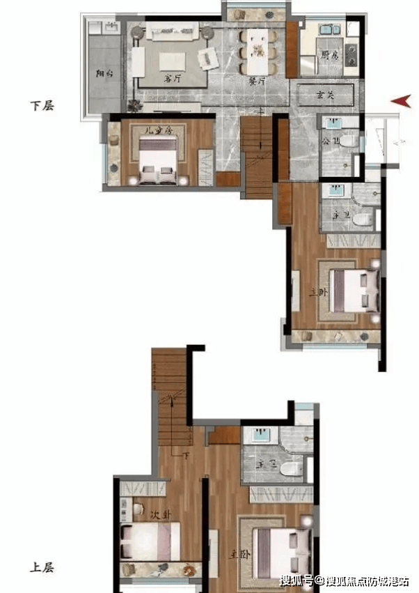 鸣悦与沐风:均为约109平方米舒阔复式大四房