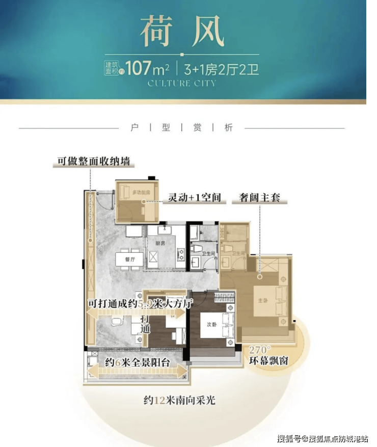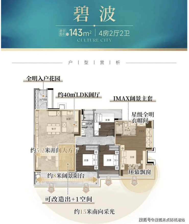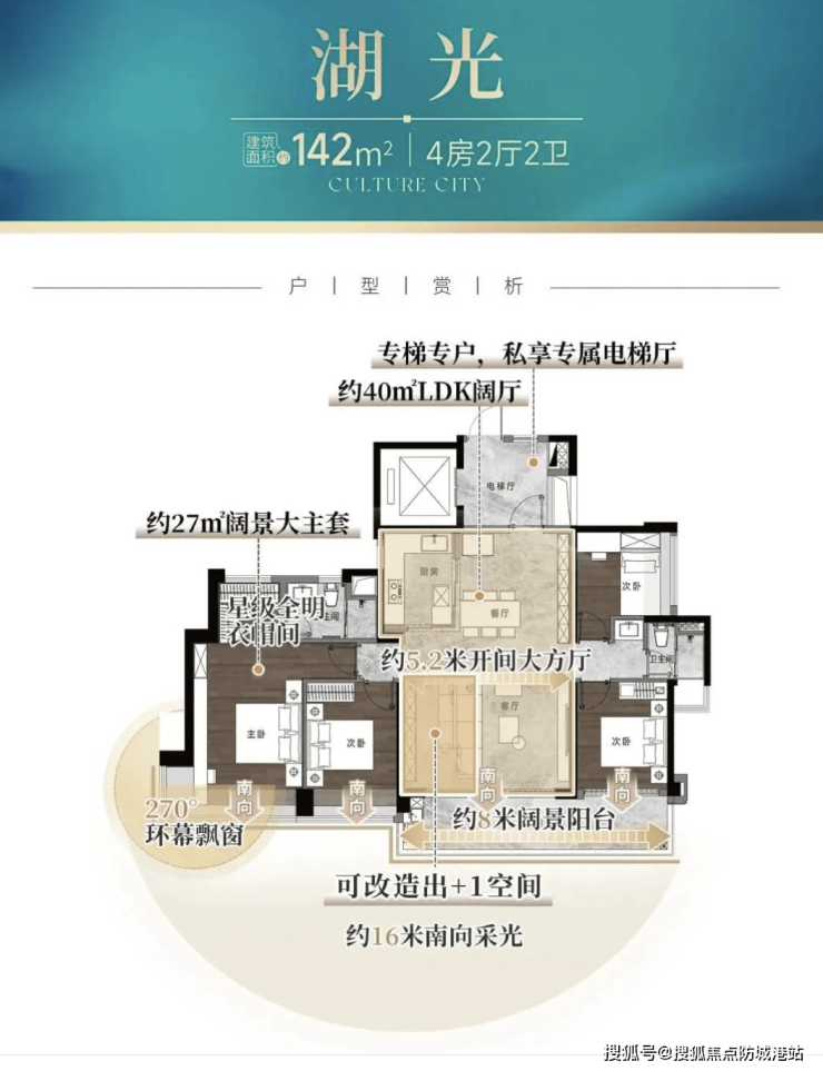 产品力强:全南向新规四房,专梯入户,高层无遮挡湖景,实用率高达120%。