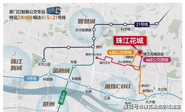 过去被诟病“地铁远、路窄”的珠江花城,正迎来交通破局关键期。项目距4/21号线黄村站约1.5公里,5号线大沙东站约2公里,虽非步行可达,但社区已设公交总站,开通465路(直达黄村地铁)、432路(接驳大沙东),并新增鱼珠、黄村两条智能公交专线,通勤效率显著提升。更值得期待的是,南侧华润润府即将开盘,为提升区域形象,茅岗路北延段双向六车道工程有望加速落地。此外,规划中的地铁19号线已在政府文件中明确走向,未来或设站于项目1公里范围内。而7号线姬堂站直线距离仅1.3公里,自驾经广园快速、黄埔大道亦可快速接入珠金琶三大CBD。交通短板正在系统性补强,未来三年将是兑现高峰期。