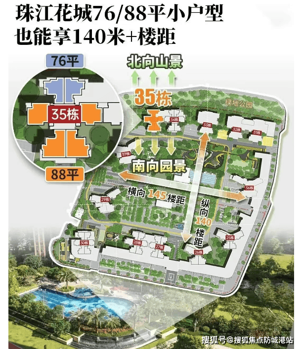 珠江花城最新加推的六期35栋,主打88㎡3+1房南向望花园单位,堪称天河东小户型“卷王”。其最大亮点在于:同等面积多一房、0飘窗赠送、LDKB一体化设计。88㎡竖厅户型实现三开间朝南,阳光从早洒到晚;入户多功能空间可灵活改造为书房、电竞房或收纳间;主卧预留独立衣柜区,动线流畅不挡窗。76㎡3+1房则通过客餐厨阳台一体化,放大空间感,阳台直面山景,居住体验远超同级产品。而119㎡、140㎡乃至194㎡改善户型,更以15-16米南向开间、南北对流、豪华主套带衣帽间等设计,满足多孩家庭与品质升级需求。所有户型均规避“暗卫”“黑厨”,实用性与舒适度兼备。