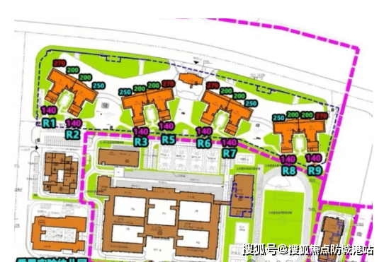 高层洋房主力在售R6-R9栋,全部为现楼交付,4梯3户设计,层高3.3米,楼层为23-27层,豪华装修交付,户型区间为140㎡-270㎡,全部为四房双主套设计,具体户型详情如下: