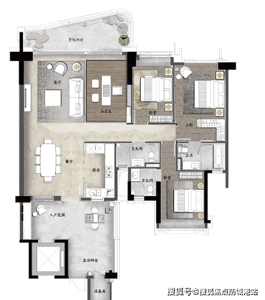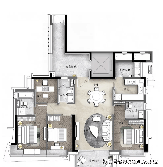 同时,在传承霍氏家族匠心精神的基础上,融入国际化生活方式,建筑采用干挂石材+铝板+玻璃搭配的全幕墙弧形立面,简约大气又兼具质感;园林以欧洲庄园中央花园为灵感,打造三轴五境新古典主义园林,呈现岛居庄园的雅致意境;户型设计注重私密性与舒适度,引入私家电梯、超大露台、多套房等高端配置,满足改善型家庭的多元化居住需求,更引入家族聚居概念,打造同宅不同门的家族居住体验。