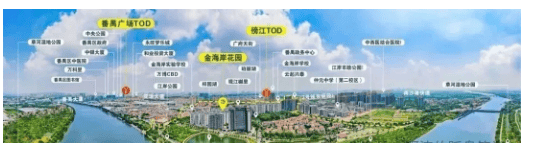 金海岸花园坐落于番禺亚运大道,地处番禺新行政中心——市桥东区中心,毗邻清河大道和黄金水道市桥水道,地理位置得天独厚,是番禺广场板块的核心居住节点。项目雄踞广州南中轴南端,占位“下一个珠江新城”价值核心,依托番禺广场TOD枢纽优势,融入大湾区1小时生活圈,地理位置的优越性不言而喻。
