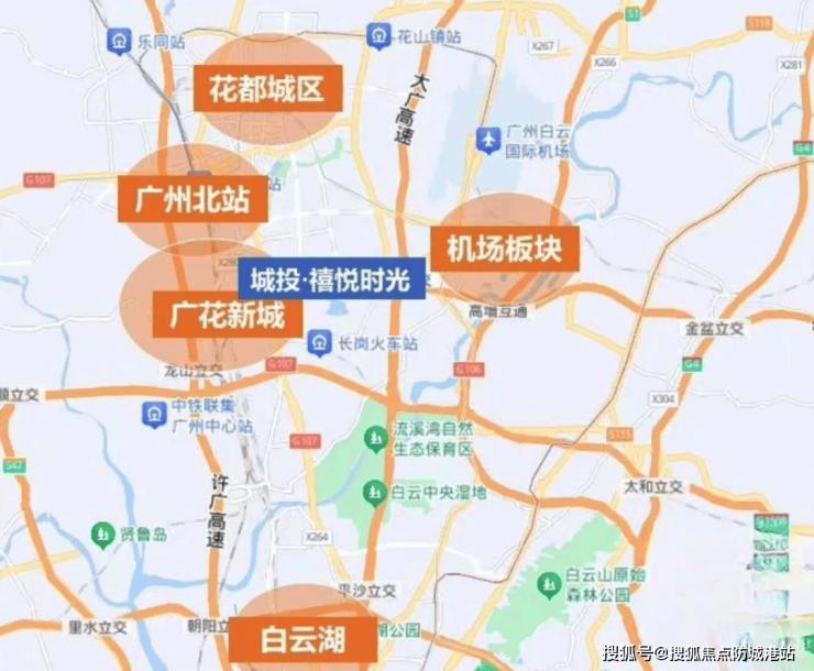 广州「城投禧悦时光」位于广花板块,该板块地处花都南部,靠近白云,是花都的热门板块之一。广花新城作为板块的核心区域,占据广州北部核心区位,发展潜力巨大。