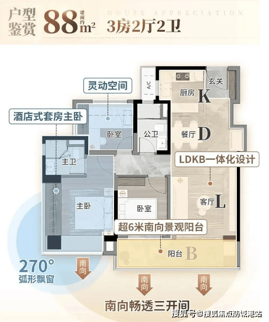 该批次户型为新规后设计,阳台、飘窗、花池等部分均有赠送,户型使用率超100%,进一步提升了空间的实用性和性价比。此外,户型设计注重动静分区,将休息区与活动区有效分离,保证了业主的居住私密性和舒适性。