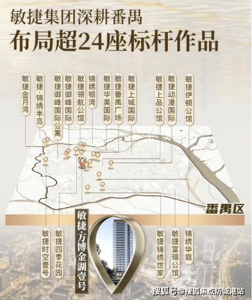 敏捷·万博金湖壹号位于番禺市广路,总占地约7.45万平方米,首期开发约4.57万平方米,规划10栋27–31层住宅,主打95–146㎡全南向湖居产品,容积率3.21,车位配比1:1.55,预计2027年底交付。作为敏捷集团在番禺打造的第25座人居作品,项目延续其“CBD+生态”开发逻辑,旨在打造万博片区的湖居标杆。