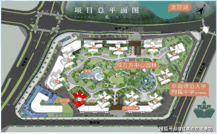 2. 教育资源硬核:一路之隔华师附中小学(已开学),黄埔第一所华师附小学,华师附中学共享本部资源,项目自建12班幼儿园,15年目送式教育闭环,周边名校环绕,解决孩子教育难题;