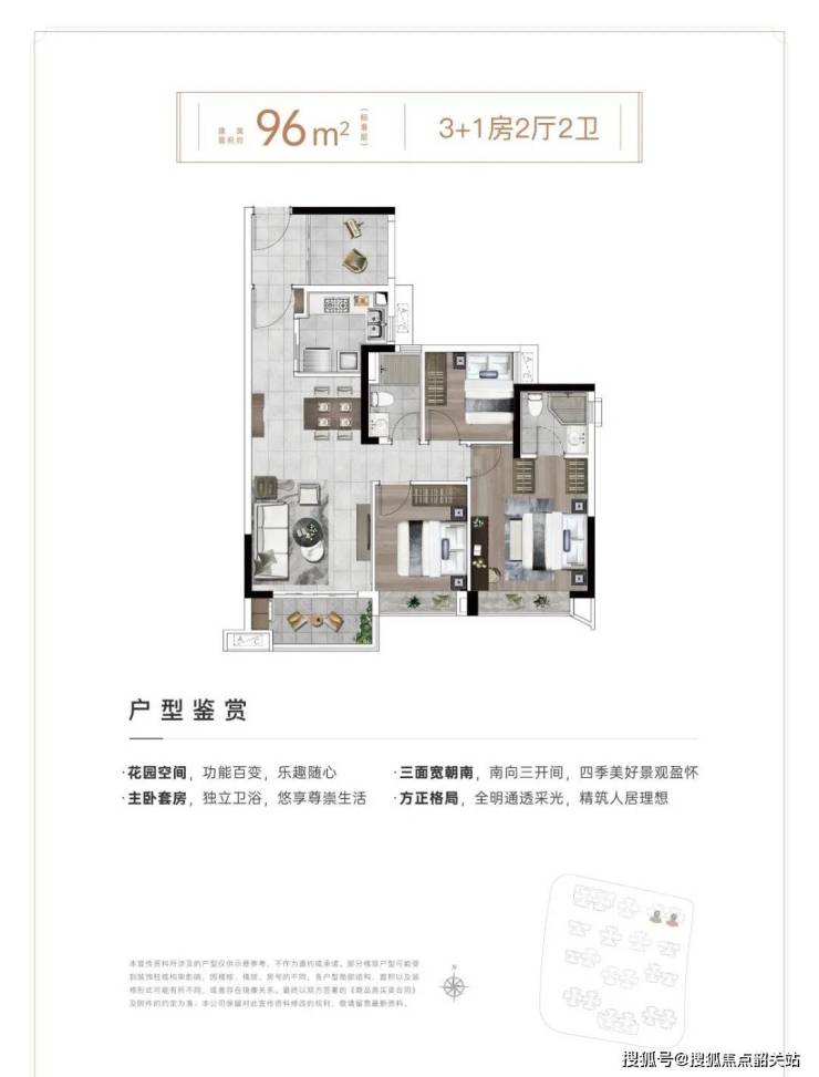 96㎡3+1房:三开间朝南,多功能房可改四房,总价500万起。