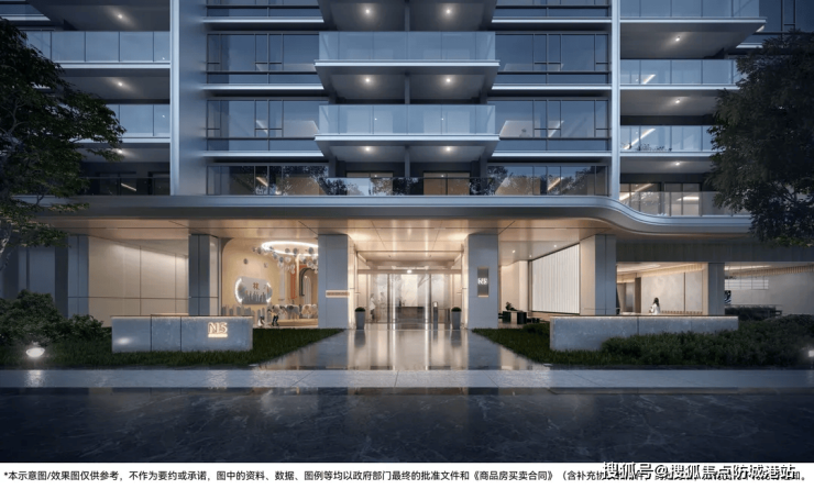 项目经过上百次方案比对,最终采用纯板式设计,所有户型一字排开,实现100%南北对流,且几乎所有户型均为三开间及以上朝南,相较于传统塔楼,在通风、采光、私密性上具有显著优势。建筑整体承袭扎哈·哈迪德的流体美学,利用弧度变化创造光影感,搭配大面积玻璃与汤臣一品同款扶手栏杆,呈现流光天幕立面美感。