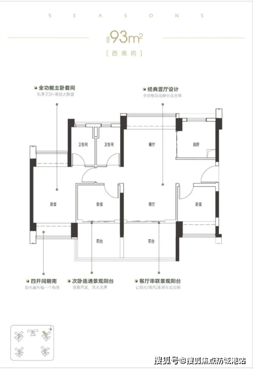 新世界四季山水主打92~141㎡的三至五房户型,所有户型均采用全南向设计,保证了良好的采光和通风效果。特别值得一提的是,该项目的户型设计具有极高的使用率,最高可达118%,为购房者提供了更多实际可用的空间。