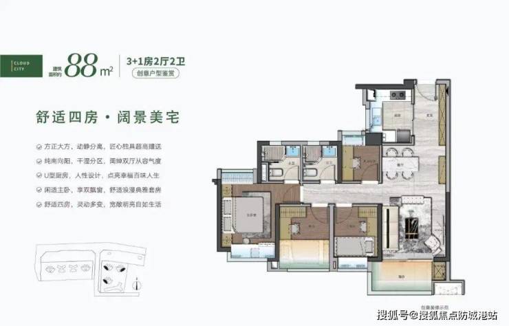 在产品设计上,云城上品展现出极强的空间优化意识。即便是最小的72平方米单位,也通过紧凑布局实现四房功能——其中三间次卧尺寸控制在合理范围(最小开间约2.4米),主卧带飘窗且进深充足,满足基本储物与起居需求。88平方米和105平方米户型则进一步提升舒适度,如增加生活阳台、优化厨房动线、设置独立玄关等。所有户型均为南北通透或单边采光,无暗房设计。值得注意的是,项目宣称实用率100%,虽未公布具体公摊计算方式,但从样板间实测来看,得房表现确实优于同区域多数高层住宅。