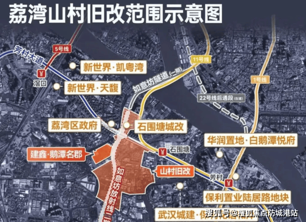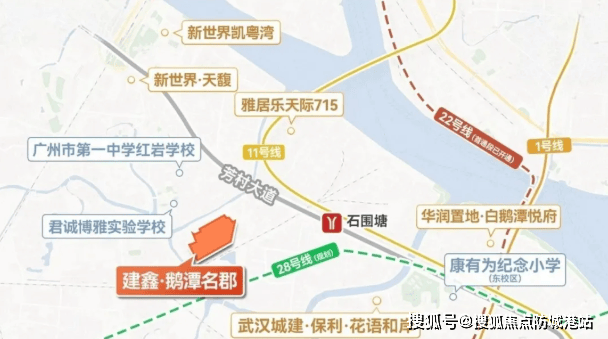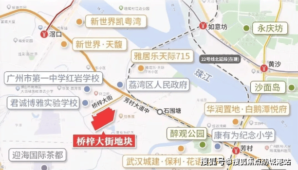 项目地处广州荔湾区白鹅潭板块,是未来城市重点发展区域之一。周边规划有多个大型商业综合体,如白鹅潭万象城、聚龙湾太古里等,预计将在2026-2027年间陆续开业。此外,石围塘城改和山村旧改也在积极进行中,预示着未来3-5年内该区域的城市界面将得到大幅提升。