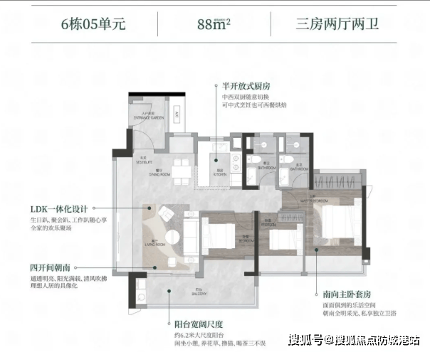 精心设计的户型:88平方米小三房采用全南向布局,阳台开间达6.2米,采光和空间利用率高;106平方米和125平方米户型也具有出色的使用率和宽敞的设计。