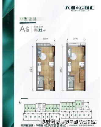 建面约 31㎡的 A 户型空间灵动百变,虽小巧玲珑,但功能齐全,是投资的必选户型。该户型布局紧凑,空间利用率高,可根据投资者的需求进行多样化改造。例如,可以设计成小型工作室,满足创业者的办公需求;也可改造成精致的单身公寓,用于出租,获取租金收益。由于面积较小,总价相对较低,投资门槛不高,适合资金有限但又想在天河智慧城区域进行投资的人士。同时,其灵活的空间设计,能满足不同租客或使用者的个性化需求,增加了投资的灵活性和收益潜力。