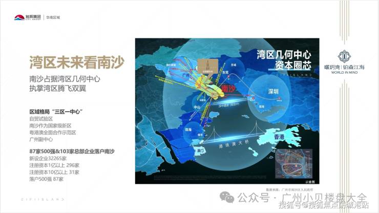 粤港澳大湾区涵盖广州、深圳、珠海、佛山等9个城市和香港、澳门两个特别行政区,拥有得天独厚的地理位置和完善的产业体系,聚集了全国顶尖的人才、资金和技术资源。随着湾区一体化进程的不断加快,交通、产业、教育、医疗等各类资源加速融合,区域发展潜力持续释放,而南沙作为大湾区的几何中心,更是成为了湾区发展的“桥头堡”,承接了大量的政策红利和产业转移,成为无数人投资置业的热土。