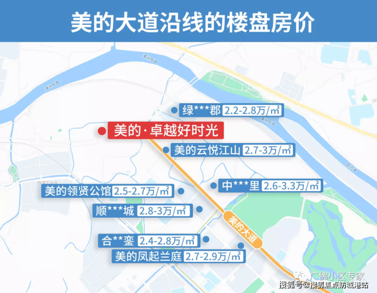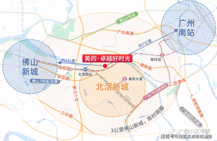 项目地处北滘新城核心发展板块,距北滘新城价值中轴美的大道仅约 1.2 公里,美的大道沿线房价最低 2.2 万 /㎡起,最高已突破 3 万 /㎡,项目拥有显著的价格优势,是北滘新城核心区的价值洼地,拥有广阔的增值空间。项目拥有双地铁、双公园、12 年制一站式教育、楼下主题商街的全维度全能配套,360° 覆盖教育、商业、医疗、交通、生态等全维度生活需求,所有配套均已落地或有明确规划,无需等待长期发展周期,可即享成熟的广佛双城生活。同时项目由美的置业与卓越集团双强联合开发,拥有稳健的品牌保障、优异的产品力与专业的物业服务,是广佛置业的优质选择。