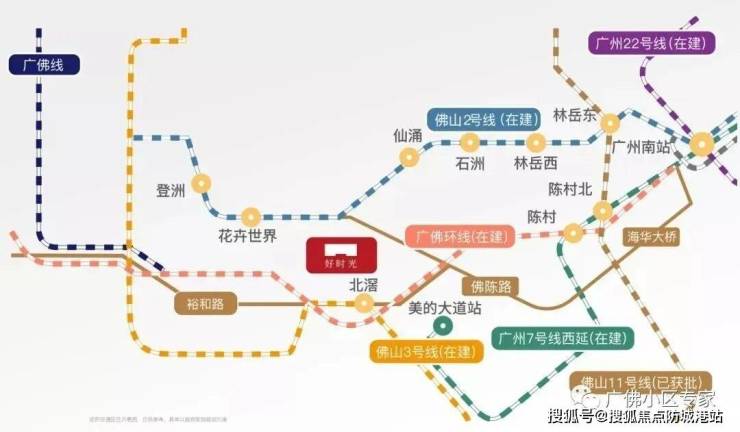 项目拥有双地铁、一城际、六大快线的全维度立体交通路网,可快速通达广佛全域与湾区核心城市。轨道交通方面,佛山地铁 3 号线已全线开通,从项目出发可快速通达禅城、南海、顺德三大核心区域;广州地铁 7 号线西延段已开通运营,7 站即可直达广州南站,实现广佛同城快速通勤。广佛环线城际轨道预计今年年底试运行,明年 3 月正式开通,从项目出发 10 分钟即可直达广州南站,快速接驳白云国际机场,实现湾区核心城市一小时通达。项目紧邻裕和东路城市主干道,西接佛山新城,东联在建的广州汉溪大道,周边环绕广佛江珠高速、广台高速、广珠西线、东新高速等六大高速路网,20 分钟内可通达珠三角各核心城市。