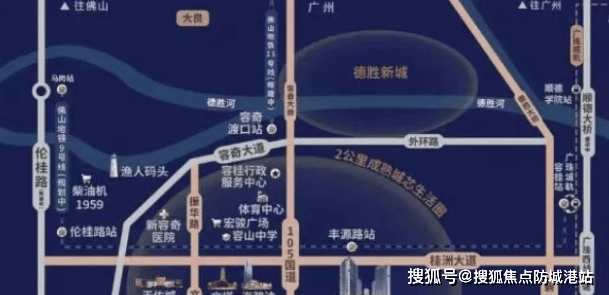交通:项目享有三横三纵的交通网络,包括高速、地铁和城际轨道,实现广佛同城自由切换。市内交通方面,通过顺德大道南(G105国道)及桂洲大道,10分钟可达大良、容桂各板块。