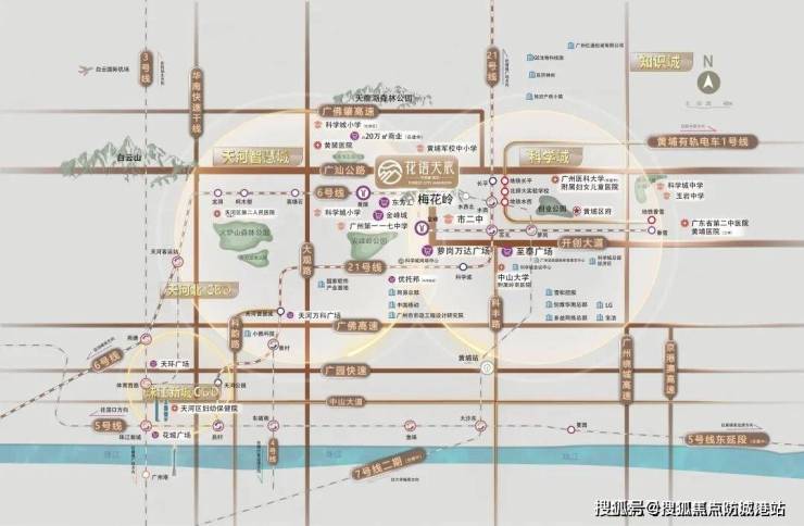项目紧邻广汕公路、广园快速、华南快速等主干道,自驾15分钟可达天河智慧城,25分钟直达珠江新城。地铁6号线黄陂站、21号线金峰站距项目约1.8公里,规划中的黄埔有轨电车1号线设站附近,未来出行更便捷。