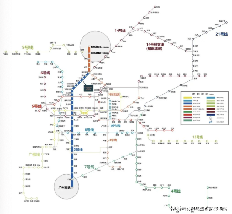地铁:直线距离地铁 2 号线萧岗站约 600 米,实测步行 800 米,用时 10-12 分钟,2 号线南起广州南站,北至白云机场,4 站到广州火车站,8 站到公园前,6 站到白云机场,换乘 1、3、5、11 号线通达全城;在建 12 号线白云站距项目约 1.2 公里,通车后 7 轨交汇,通达性再升级;
