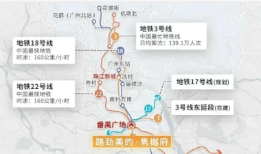 项目紧邻地铁番禺广场站,距离仅约900米,这里汇聚了已开通的3号线、18号线、22号线以及规划中的17号线,形成了五轨交汇的便捷交通网络。通过这些线路,居民可以快速抵达天河、广州南站等多个重要区域,极大地提高了出行效率。此外,小区东侧即为番禺大道,自驾出行同样便利,使得该楼盘成为追求高效便捷生活人士的理想选择。