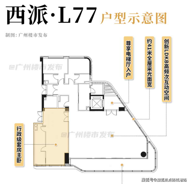 中铁西派L77为南沙国际金融岛尖顶级江景大平层项目,户型180至370平方米,低密度高端住宅,首批仅42套,稀缺性高