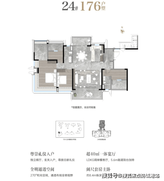 176㎡户型:配备独立专享电梯厅,入户转角玄关保障隐私;LDKB 一体化公区设计,洄游动线流畅无浪费;南北双阳台,功能分区清晰;卧室采用多套房布局,最多可形成 3 个套房空间,适配多孩、多代同堂家庭;多功能空间可灵活改造,满足全生命周期居住需求。