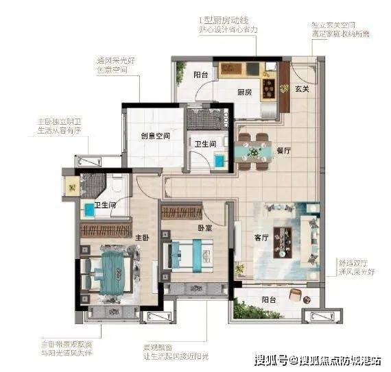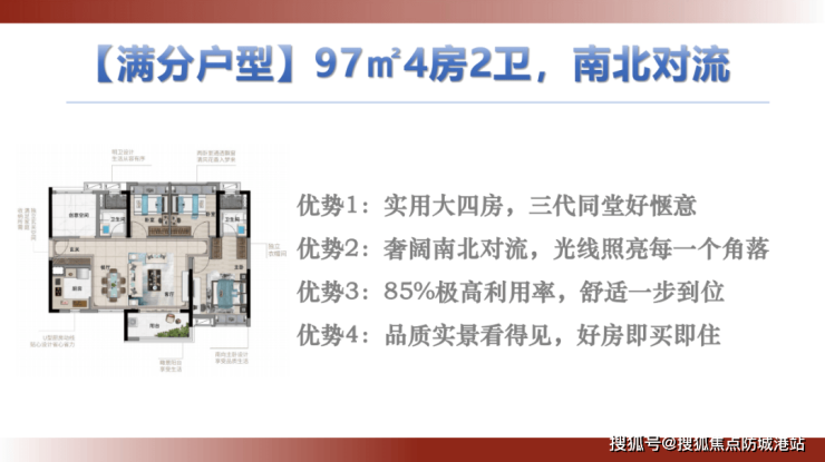 97㎡“3+1”户型:南北对流大气横厅,视野开阔。