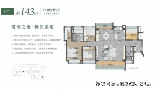 143㎡大四房(二期):四开间朝南,主卧套房配独立衣帽区,满足改善需求。