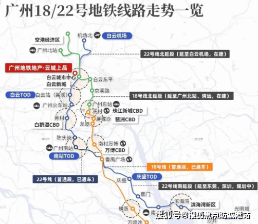 云城上品最大的区位优势,在于其“真·地铁上盖”属性——项目直接建于在建的白云城市中心站之上,该站为广州地铁18号线与22号线交汇枢纽。两条线路均为设计时速160公里的高速地铁,大幅压缩跨区通勤时间。