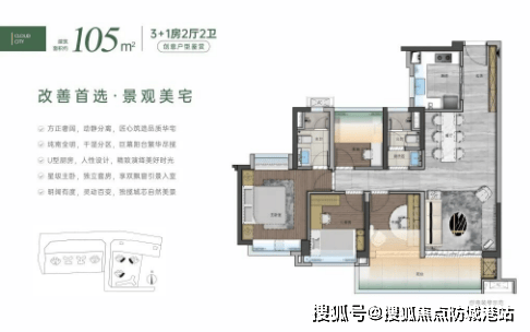 105㎡四房:LDKB一体化客餐厨空间,提升家庭互动性;