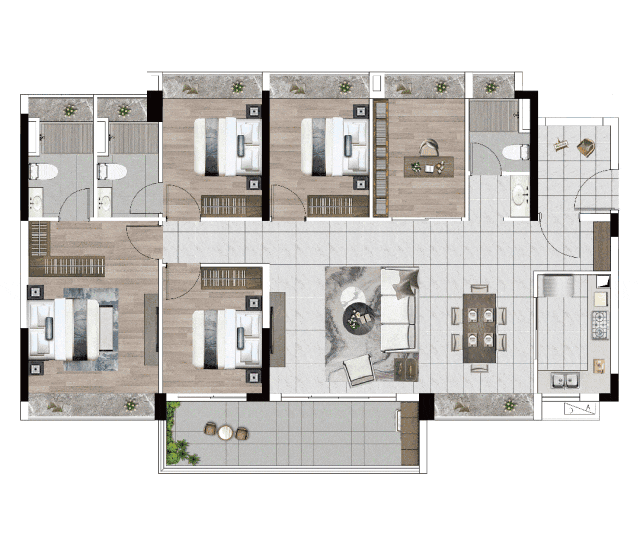 对于有较大居住需求的家庭,不妨留意一下建面约140-143㎡的5+1户型。