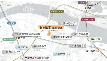 项目坐拥“一桥双轴多轨”的立体交通网络,实现高效通达全城的出行体验。自驾出行便捷,通过江湾桥、海印桥可一桥直达越秀区核心,快速衔接天河区,畅享双主城核心资源。轨道交通覆盖完善,家门口规划有25号线仲恺路站,毗邻2号线市二宫站,1站可达江南西、海珠广场,2站直达公园前、昌岗;东侧临近10号线滨江东站,1站至东湖,3站抵达广州大道中,轻松串联主城各大核心板块。公共交通同样便捷,项目周边布局3座公交站,30余条公交线路交织,满足日常多样化出行需求。
