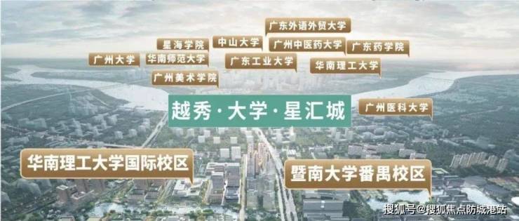 越秀大学星汇城坐落于广州大学城二期板块,这一区域被誉为“南中国硅谷”,是广深港澳科技走廊、广州科技创新轴与南大干线经济带的交汇点。该板块不仅是广州重要的科技创新中心,也是粤港澳大湾区的核心智慧枢纽之一。项目周边环绕着包括暨南大学和华南理工大学在内的12所高校,形成了浓厚的学术氛围和高知圈层聚集地。