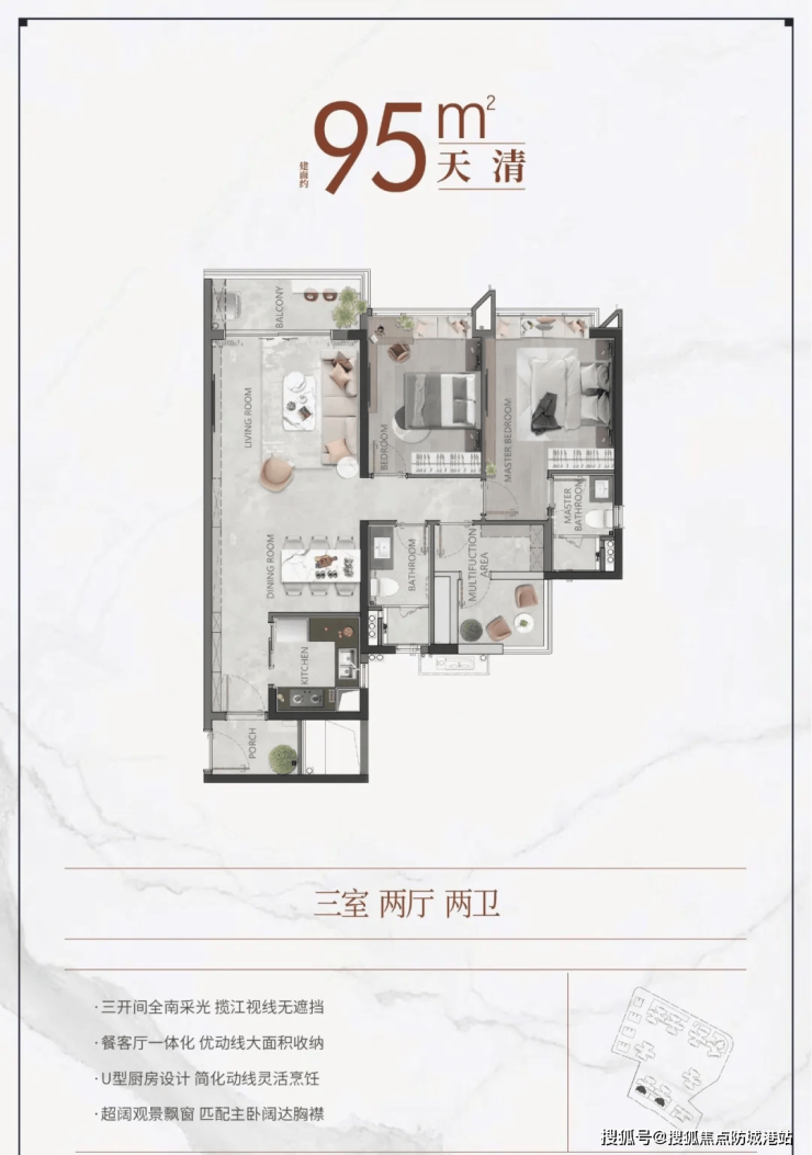 刚需首选97㎡三房两厅两卫户型,总价约360-380万元,单价3.8万/平起,是首次置业小家庭的理想选择。该户型配备专属入户花园,既能增加收纳空间,又能打造独立的归家仪式感;三开间朝南设计,保证室内充足采光与通风,让房间时刻保持明亮通透;同时规划N+1可变空间,可根据需求改造为书房、儿童房或储物间,灵活适配家庭成长变化;主卧搭配超阔观景飘窗,闲暇时可凭窗远眺,享受惬意时光。