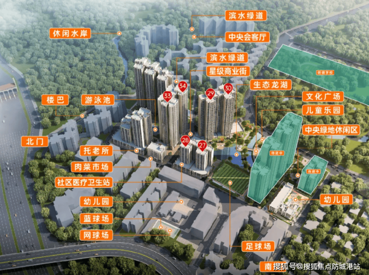 项目整体绿化率达37%,拥有约8.8万平方米绿地面积,其中包括约10万㎡亲水园林、龙湖私家水景及一条长约1.6公里的珠江一线滨水长廊。社区内设有儿童乐园、健身区、约2900㎡标准足球场、恒温泳池、文化广场及多个邻里交流空间。住宅架空层打造泛会所概念,提供阅读、棋牌、亲子互动等功能区域,增强邻里互动与归属感。