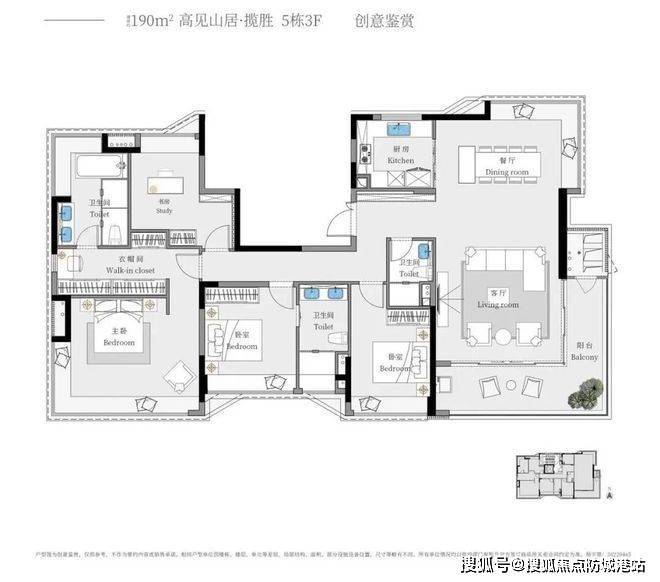 揽胜(建面约 190㎡):多元奢配户型,拥有不同格调的空间,却都散发着优雅的品位。南北对流的 270° 转角景观面阳台,为业主带来独特的观景体验。IMAX 套房主卧,空间可随性变换,满足业主个性化的生活需求。