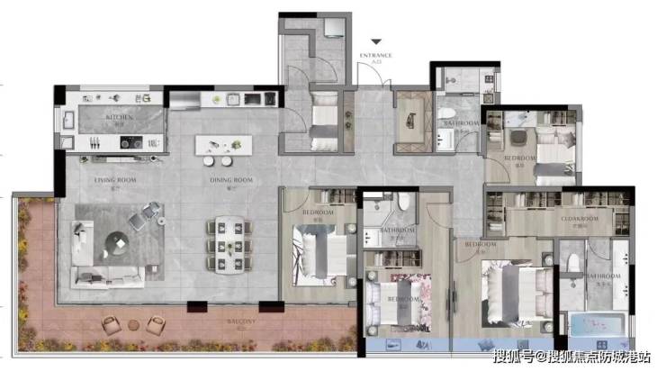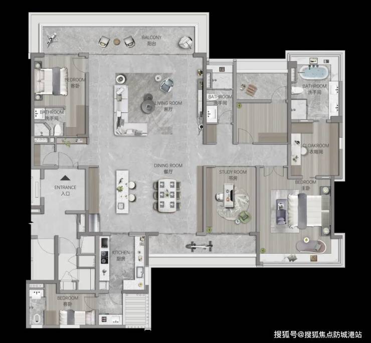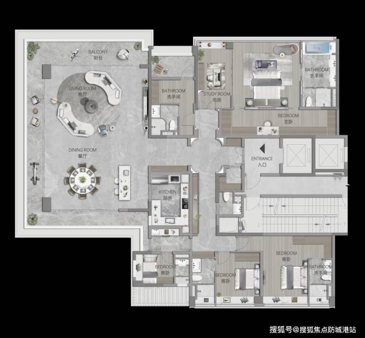 阔绰主套丨私密生活领域,约270°飘窗瞰江