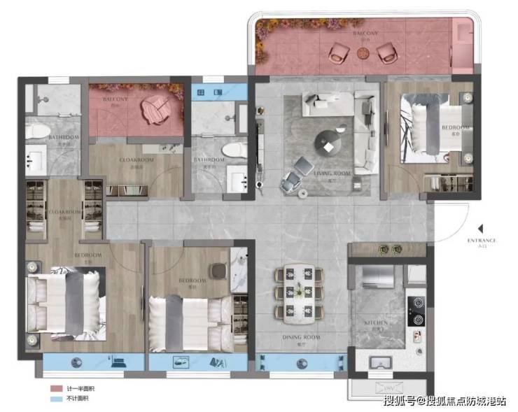 奢适主卧丨独卫与衣帽间,面景大飘窗