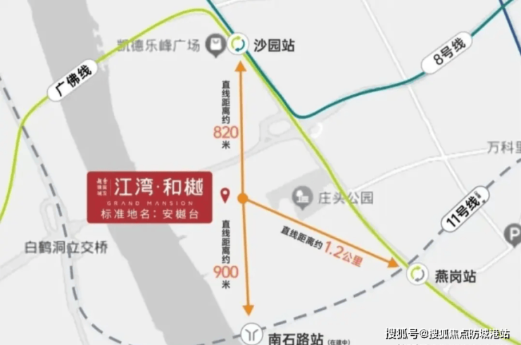 越秀江湾和樾落子荔湾区鹤洞板块,紧邻珠江后航道,是白鹅潭商务区向南延伸的重要居住承载地。项目距离在建的广州地铁11号线鹤洞东站约800米——这条被誉为“换乘之王”的环线将于2026年全线通车,届时从项目出发: