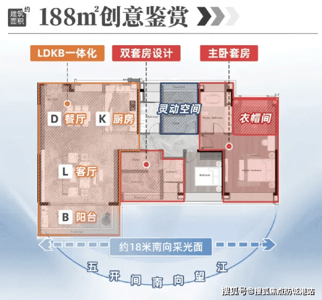双主套设计,主卧270°飘窗尽揽珠江落日;